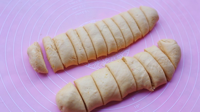 9. 分成大小相等的小剂子。