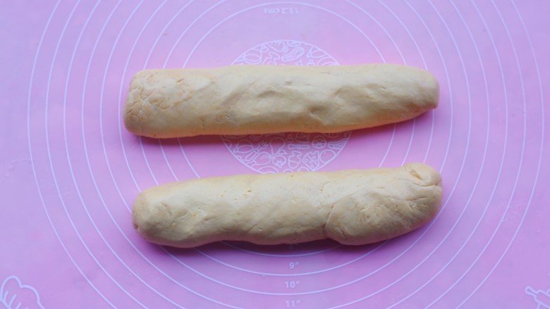 8. 揉成不沾手的面团,可以适当多加点面粉,将面团搓成长条。