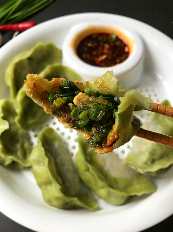 冬至美食 韭菜鸡蛋粉条双色水饺