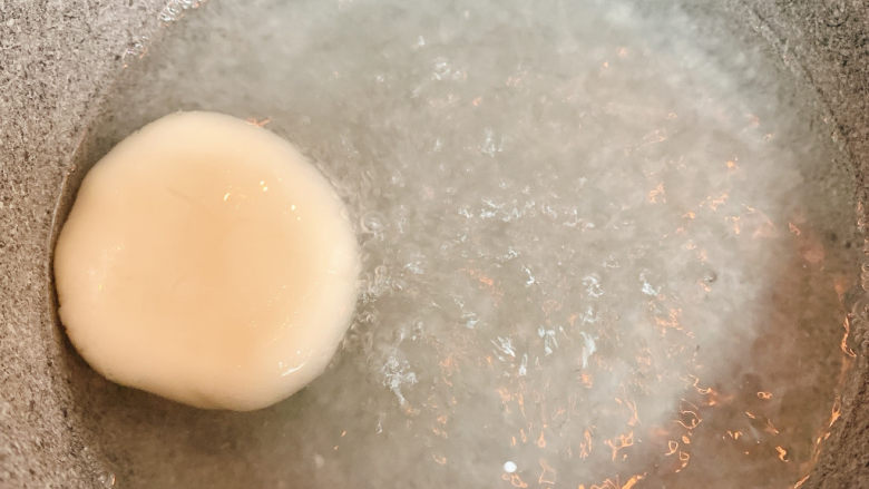13. 将汤圆放入滚水中。