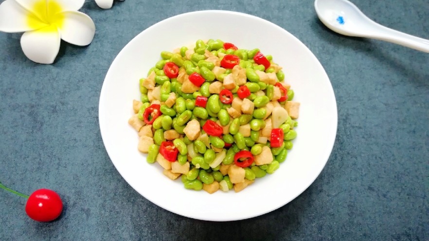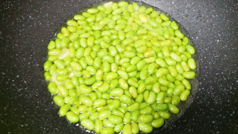 5. 将剥好的豆子放入水里,用手轻轻的搓一下,洗去毛豆上面一层像膜一样的东西,控一下水分备用。