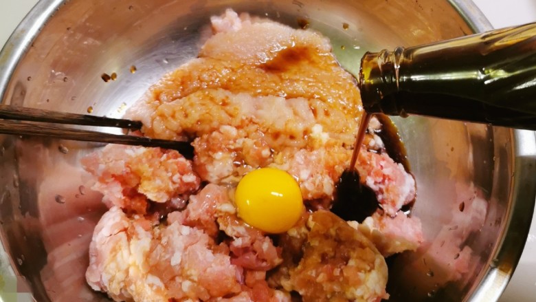 10. 韭菜切碎 炒熟2个鸡蛋碎 放入馅料盆 淋上芝麻油 拌匀即可