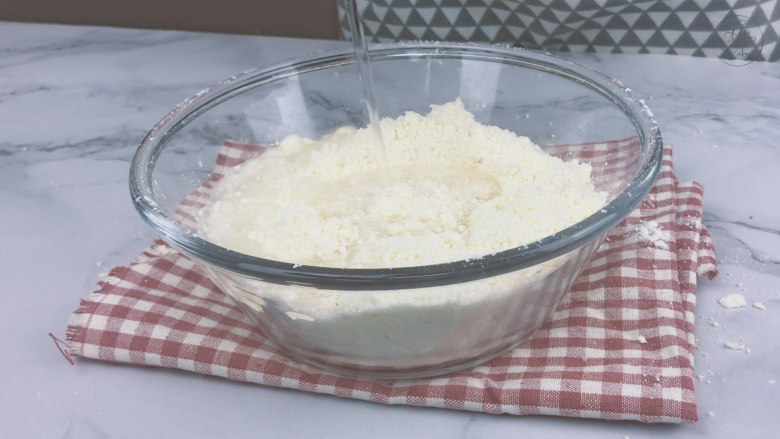 11. 面团稍微压拌,直到看不见干粉即可,不要揉捏。