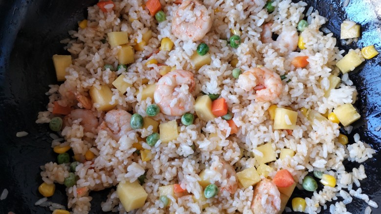 酸甜可口,清新高颜值的菠萝虾仁炒饭。食材丰富、颜色鲜艳,还没入口就已经让眼睛饱餐一顿。吃上一口,让人从口到胃都体验到美味的刺激。