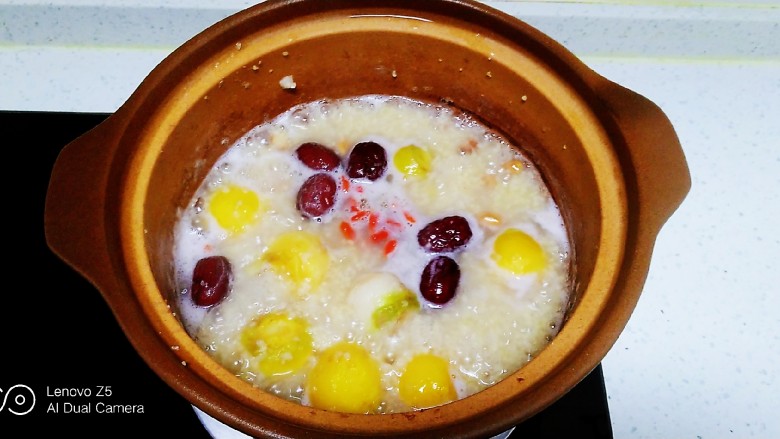 8. 锅中放入适量清水,放入蔓菁、花生、红枣