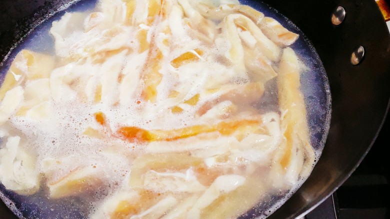 16. 汤汁烧开后捞去残渣,再加入烫熟的肥羊卷