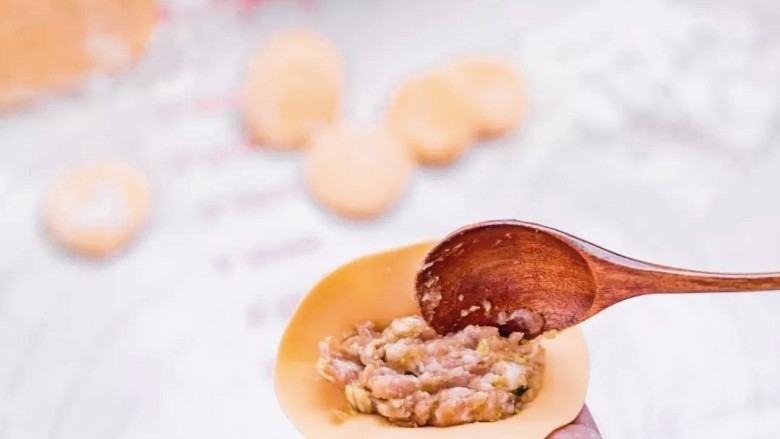 14. 取出肉馅,开始包饺子