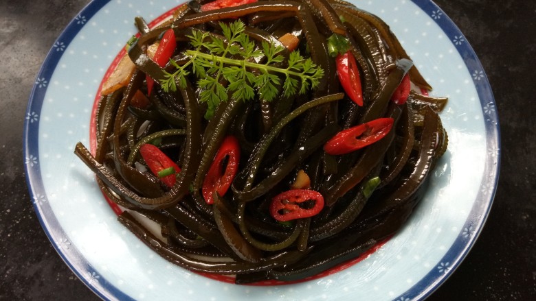 15. 拍上成品图,一道美味又营养的香辣海带丝就完成了。
