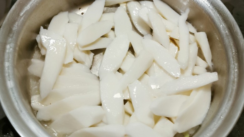11. 放入山药片 翻炒