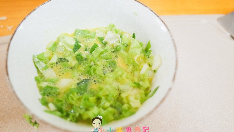 4. 锅里放入一点油倒入青菜鸡蛋,先不要动等稍微有点凝固