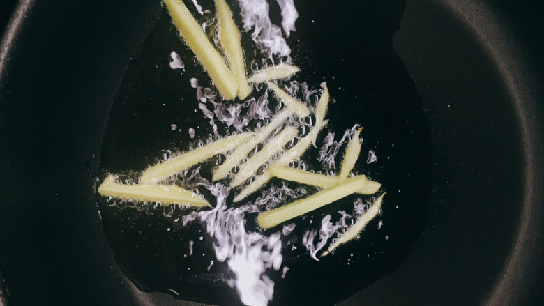 4. 下姜丝炒香。