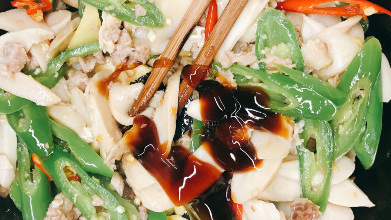 平常家里会做一些肉臊子,用来下面条或者炒菜,都非常方便,今天就用肉臊子来炒个杏鲍菇吧~~