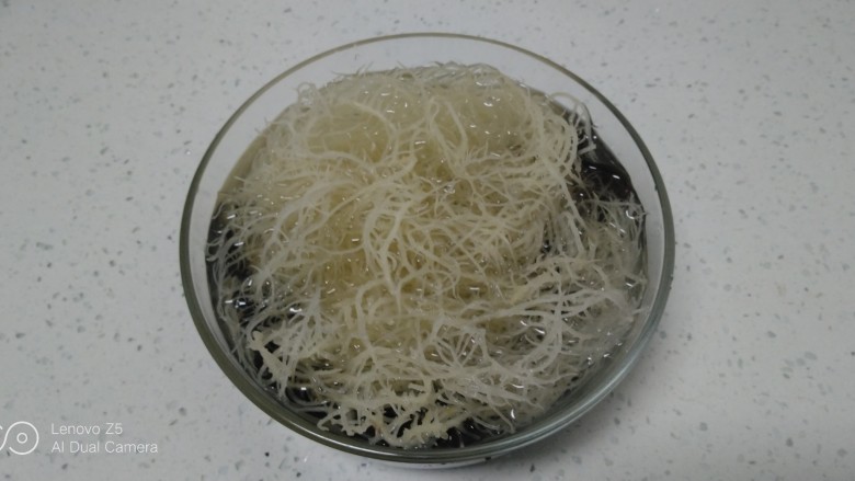 6. 锅中放入适量水,水开后放入木耳焯水90秒