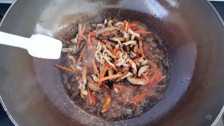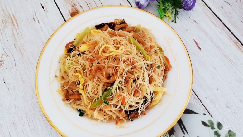 19. 粉丝炒熟倒入蛋皮丝炒匀