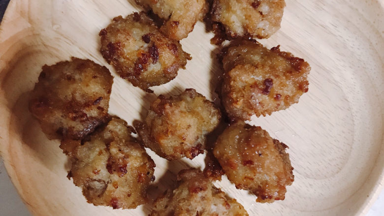 虽然不是很成功但也写出来跟大家分享,避免相同的失误点:肉剁得不够碎,炸后形状不好