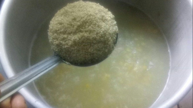 - 加入小麦胚芽和面粉后,小火煮,一定要不停搅拌,防止沾锅。