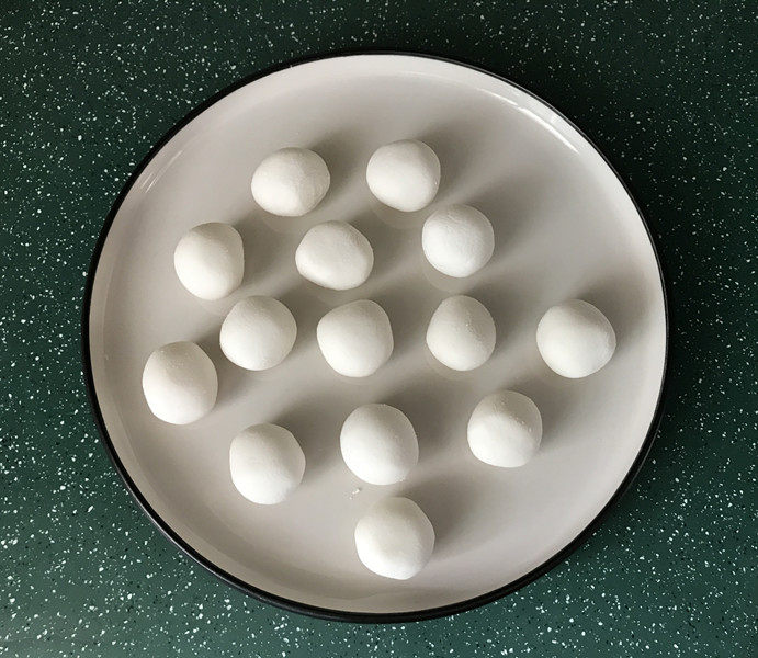 7. 然后把每个小剂子搓圆放在盘中,搓好后不用裹干粉哟