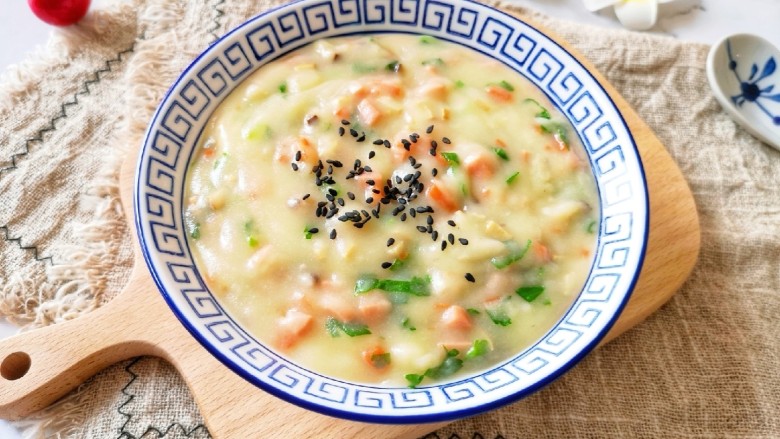 10. 用勺子搅拌均匀烧开,小火煮3-5分钟。