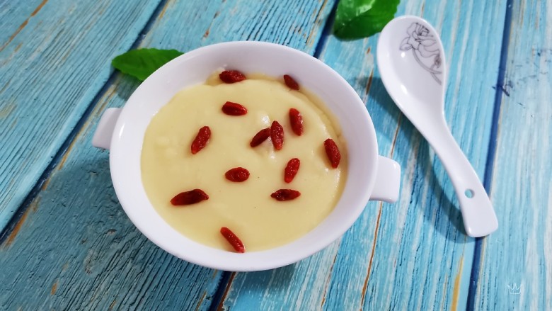 14. 搅成糊状倒入猕猴桃,继续搅拌,不能太稠