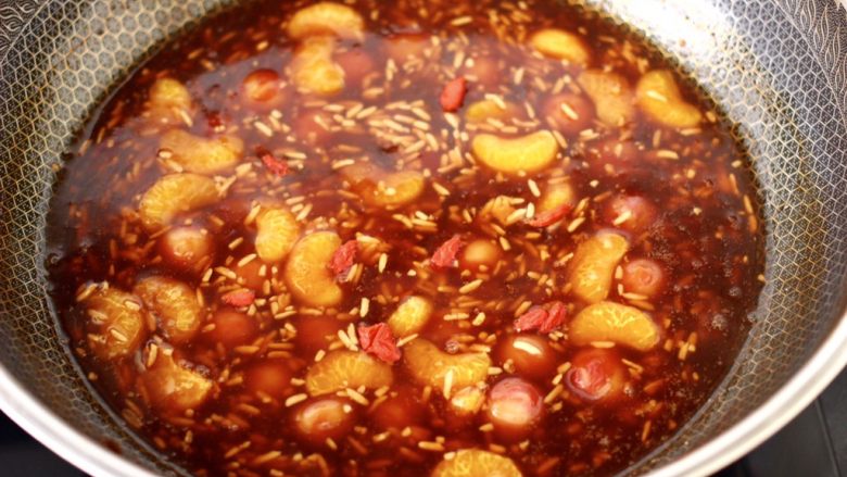 春天之际就是养生的时候,适于食点甜食,黑糖性温味甘,可止疼、行血、健脾,具有补中益气、缓中、化食,健脾暖胃功能,缓解痛经,还能利肠通便、健脾明目,平衡人体内酸碱水平,淡化色斑,搭配上酒酿和芋圆,再加上喜欢的水果,真的是养颜又营养的一道甜汤哟……