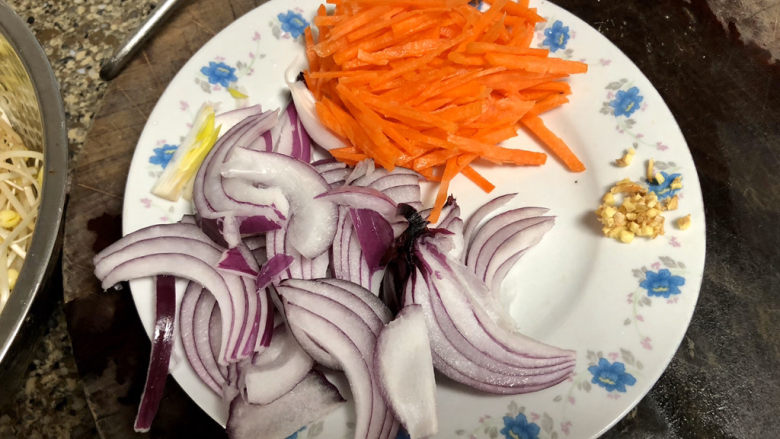 9. 一小片姜,切姜末,胡萝卜洋葱切丝