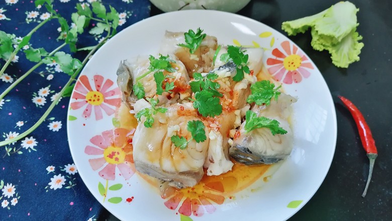 17. 拍上成品图,一道美味鲜香的清蒸草鱼就完成了。