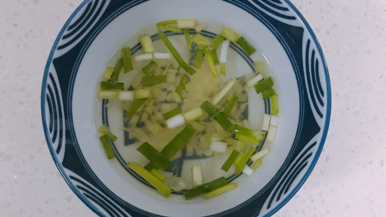 2. 取少量葱姜加入少量温水浸泡做成葱姜水