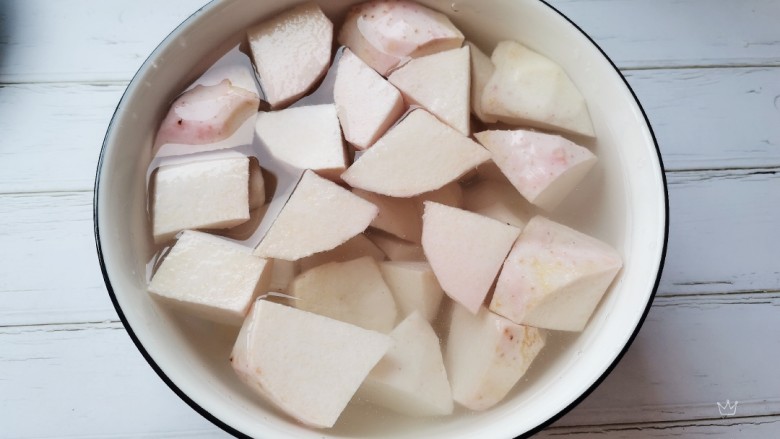 11. 倒入多点的水,没过芋艿,大火烧开转中小火烧15分钟