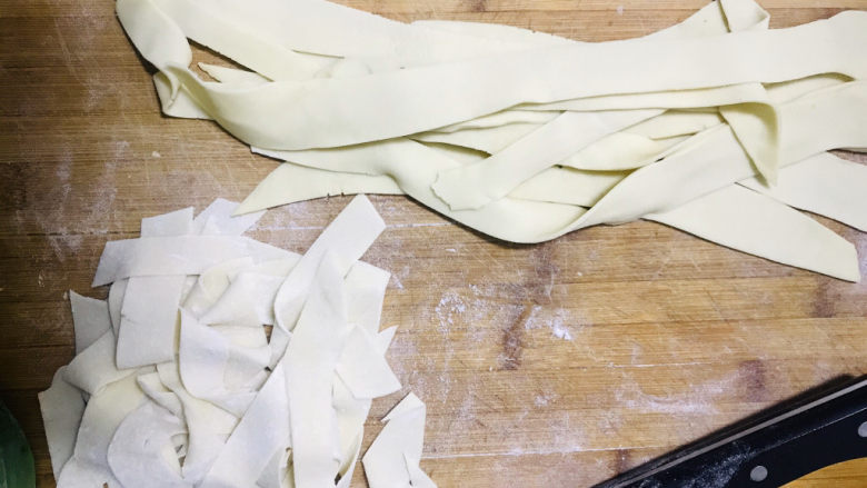 13. 醒好的面扯成宽条