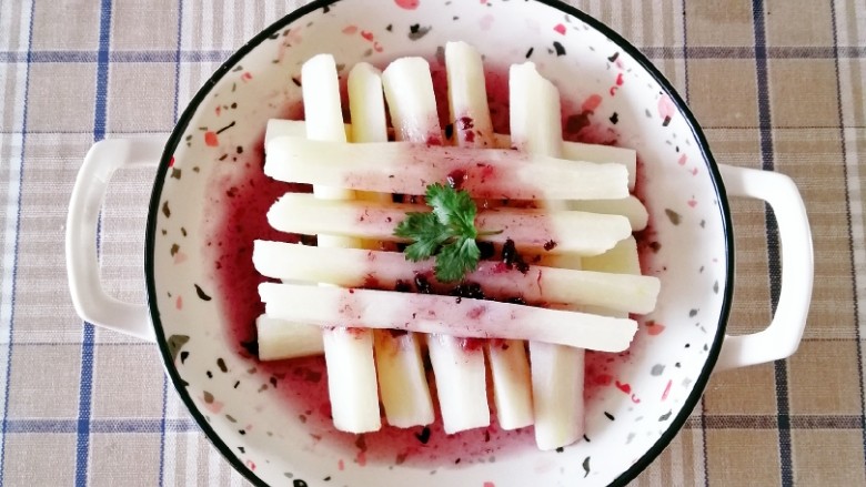 山药有健脾和胃的功效,蓝莓富含花青素和多种维生素,加上蜂蜜润肠通便,这道菜营养丰富,喜欢吃山药的朋友可以试试哦!