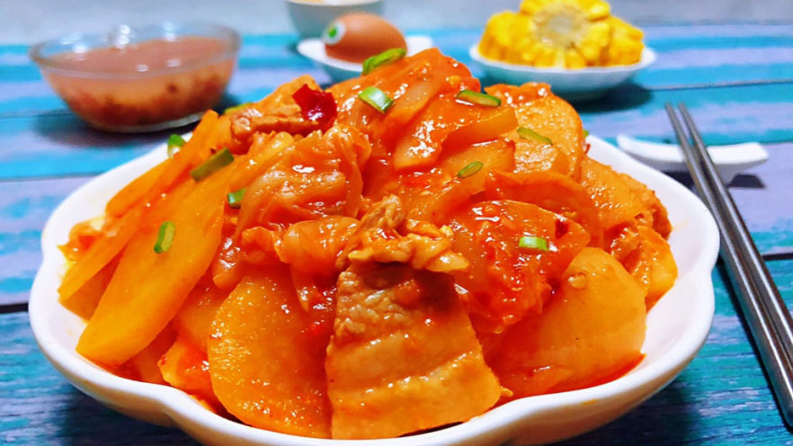 12. 辣白菜和五花肉土豆片混搭着入口就是完美的搭配口感酸辣香浓
