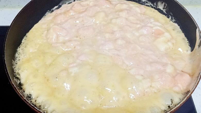 12. 锅中放入棉花糖、麦芽糖小火炒至棉花糖融化