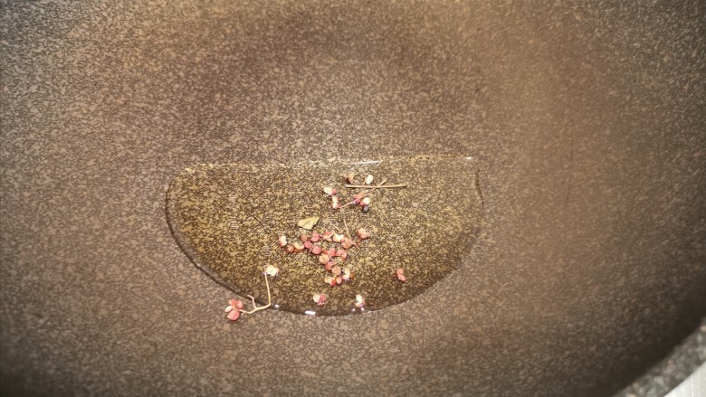 29. 锅中倒油加热,放入几粒花椒爆香后,把花椒粒扔掉
