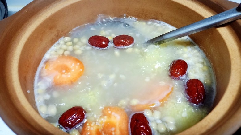 7. 红枣、小米、燕麦、莲子放入锅中,加入清水