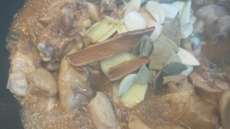 14. 加入桂皮香叶。