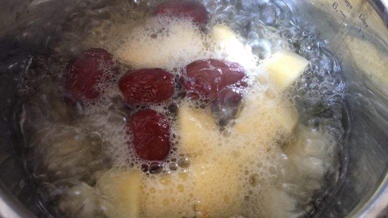 7. 雪梨,苹果和红枣放入奶锅