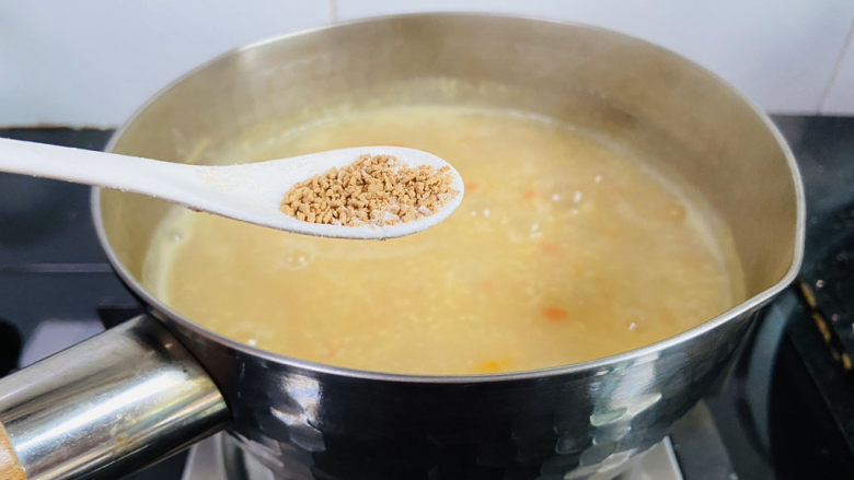 6. 大火烧开转中小火焖煮20分钟,期间用汤勺搅拌防止粘锅底