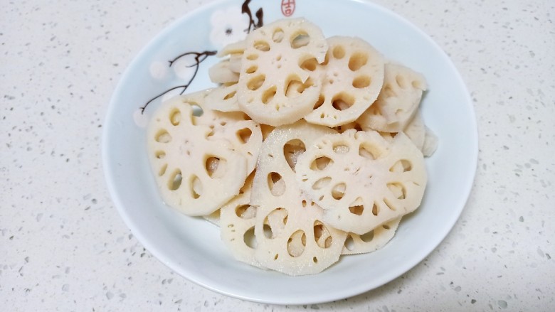 6. 莲藕切片放入清水中,加入白醋浸泡