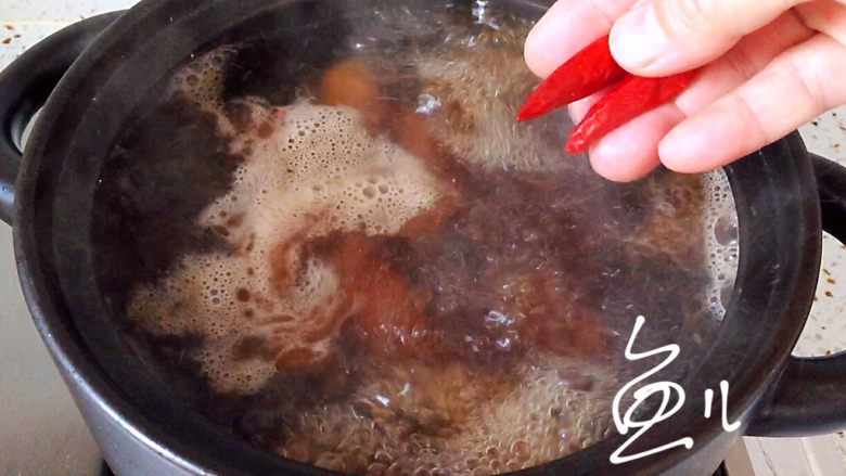 14. 放入葱结,煮15分钟