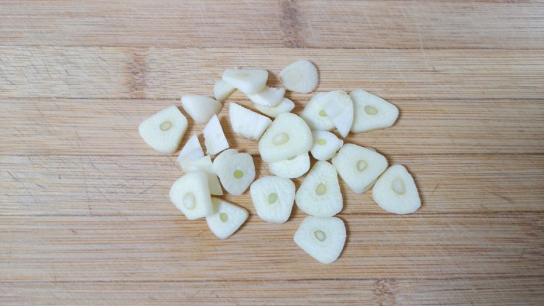 4. 炒锅内继续倒入食用油烧热,下入蒜片爆香。