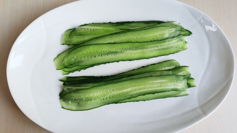11. 黄瓜片从中间折起,依次摆入盘中。