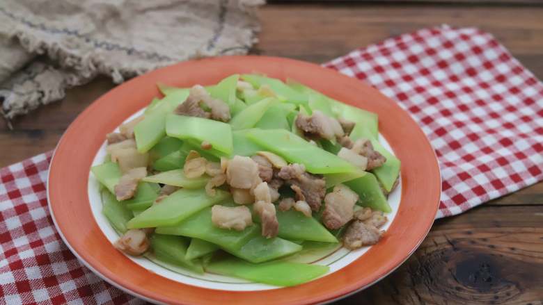 莴笋的吃法多种多样,讲真,吃了几十年我还是最喜欢简单的清炒做法,配上一点肉片,又香又开胃,虽然加了肉一起炒吧,但是它吃着就是不油腻,配上白米饭我能吃上一大碗。