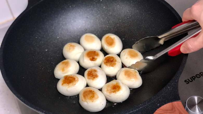 5. 鸡蛋煮好后立即取出过冰水,冷却后剥去蛋壳,每一个都很光滑漂亮!