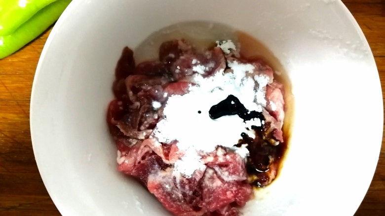 9. 抓捏均匀,全部裹在一起,牛肉就味好了。