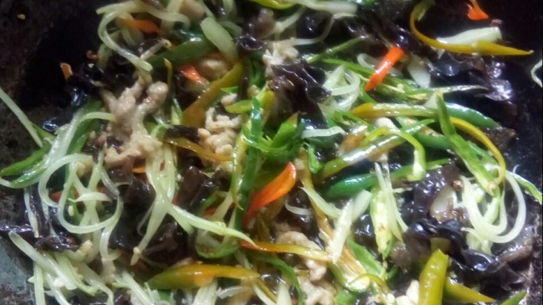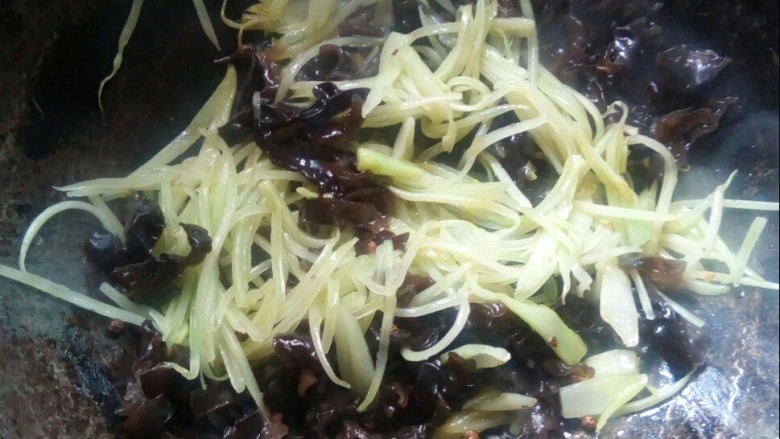 2. 莴笋切丝,木耳切丝,美人椒切丝。