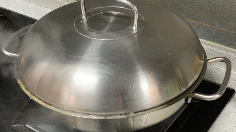 20. 加少量清水,盖上锅盖焖两分钟,使笋和肉片入味