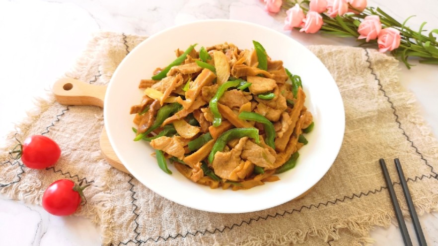 7. 炒锅内倒适量的食用油烧热,下入腌制好的肉片大火炒熟,盛出备用。