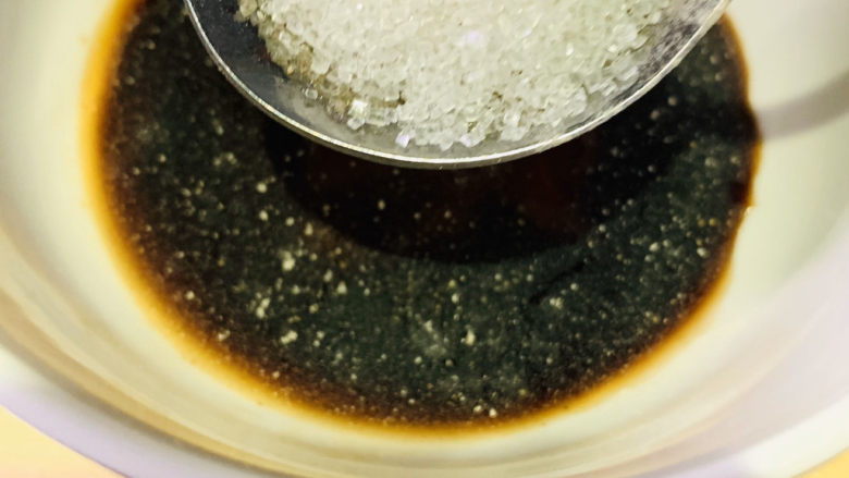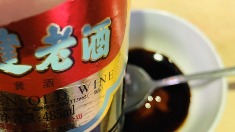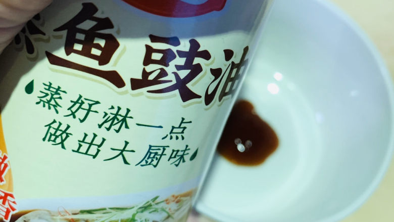 8. 猪肝腌制的时候,另外拿一个碗调料汁,先加一勺蚝油;
