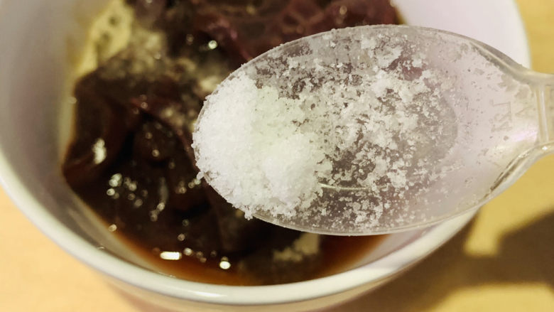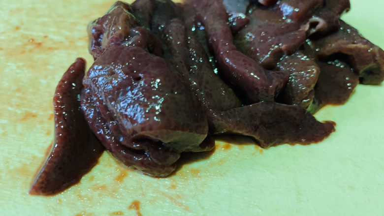13. 加少许盐,如果猪肝量比较少,担心太咸,也可以不用加盐;