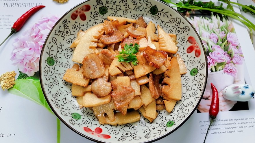 17. 装盘拍上成品图,一道美味又营养的春笋炒肉就完成了。